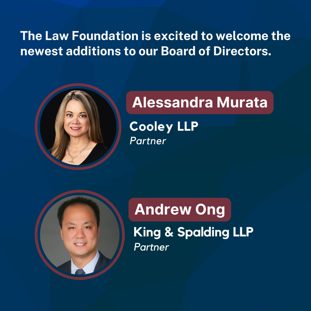 The Law Foundation extends a warm welcome to Alessandra Murata, Partner at Cooley LLP, and Andrew Ong, Partner at King & Spalding LLP.